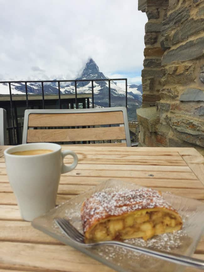 Although it’s delicious wherever you eat it, a great Swiss view makes apple strudel taste even better. I’ve been fortunate to enjoy apple strudel in some spectacular Swiss locations – including at Gornergrat with a pretty awesome view of the Matterhorn.