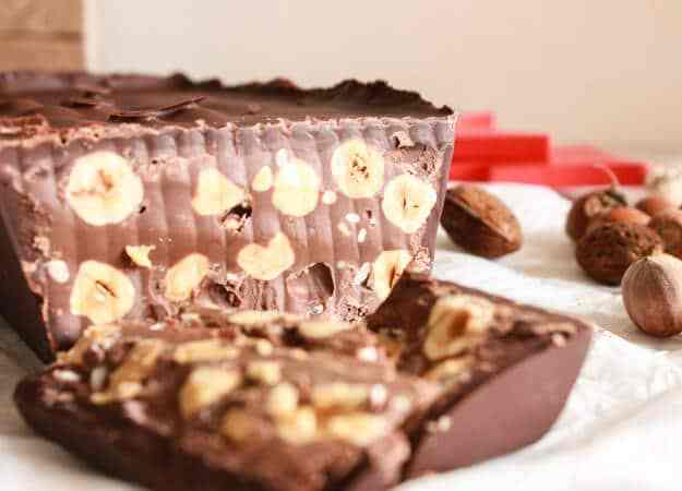 Another delicious typical Italian dessert. This creamy chocolate nougat is filled with hazelnuts and Nutella.