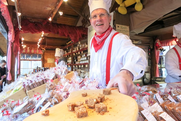 - Enjoy German Christmas desserts, nuts, and sweets – Gebrannte Mandeln (cinnamon roasted almonds), Lebkuchen (German gingerbread), Stollen (German Christmas bread), Marzipan, cookies, candy, waffles, cakes, crepes, pastries, hot roasted chestnuts…and much more.