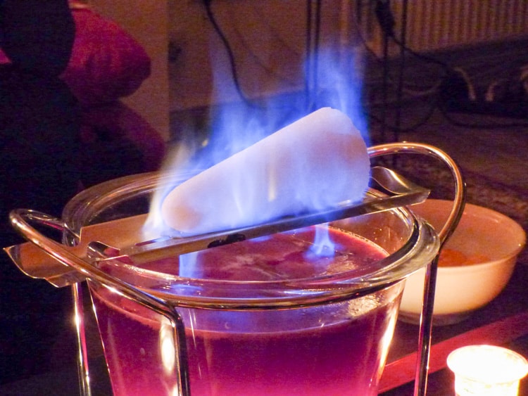 For drinks, I do love mulled wine but if you are looking for something more exciting, try a Feuerzangenbowle. It literally translates to “fire-tong punch” and it is exactly that. A rum-soaked flaming cone of sugar drips into the mulled wine to give it that extra twist.