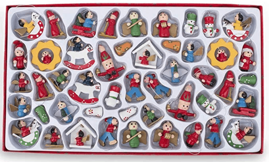 I also have a set of wooden Christmas ornaments just like the ones above, and at least a few of them go on my tree every year. I got my set in Germany (at a Christmas Market, of course) but you can pick on up on Amazon. How cool is that?