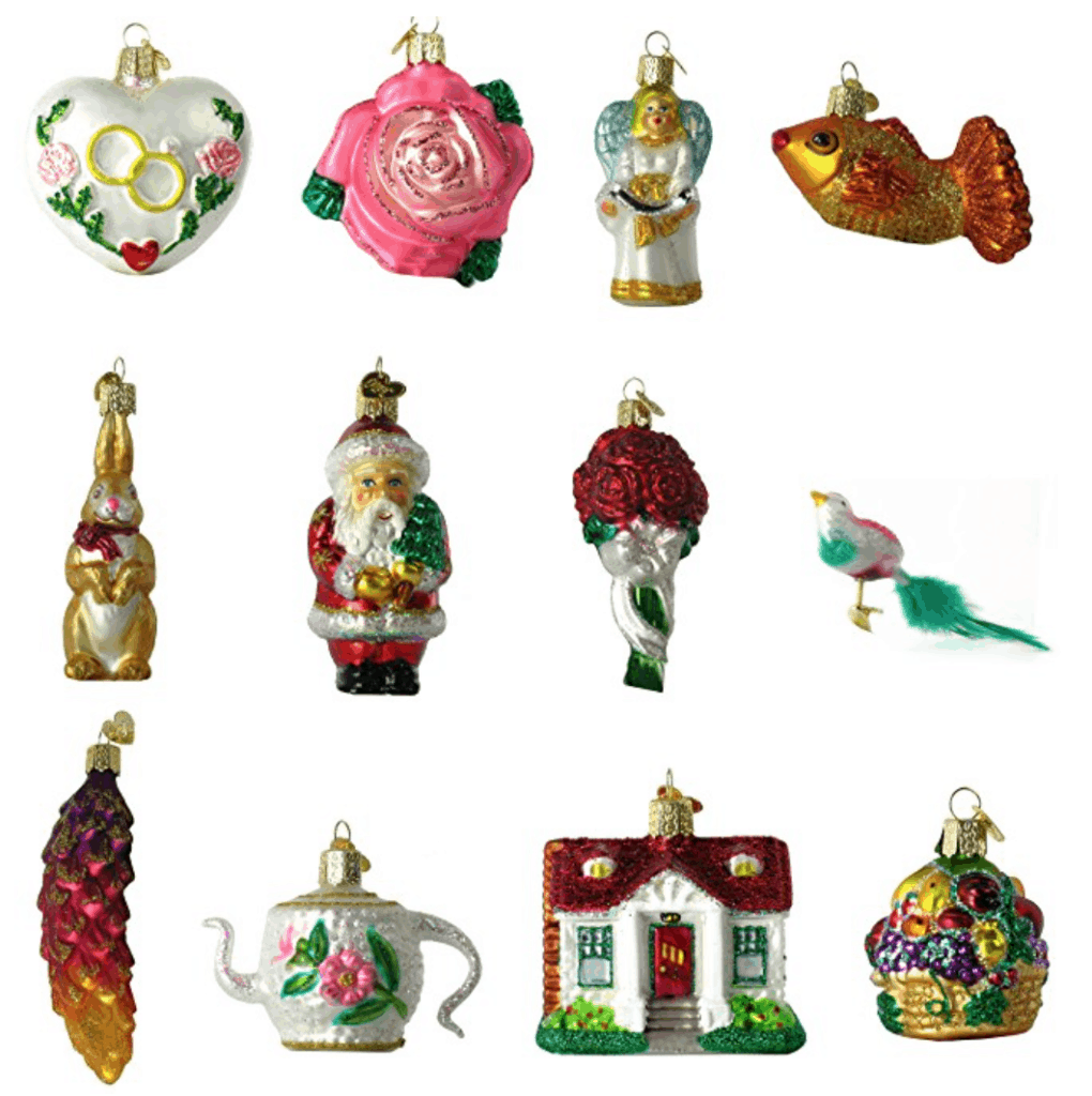 When I got married 20 years ago, my husband and I received a Bride’s Set of German Christmas ornaments from my aunt and cousin very similar to the one above. They’re the only decorations we use every single year.