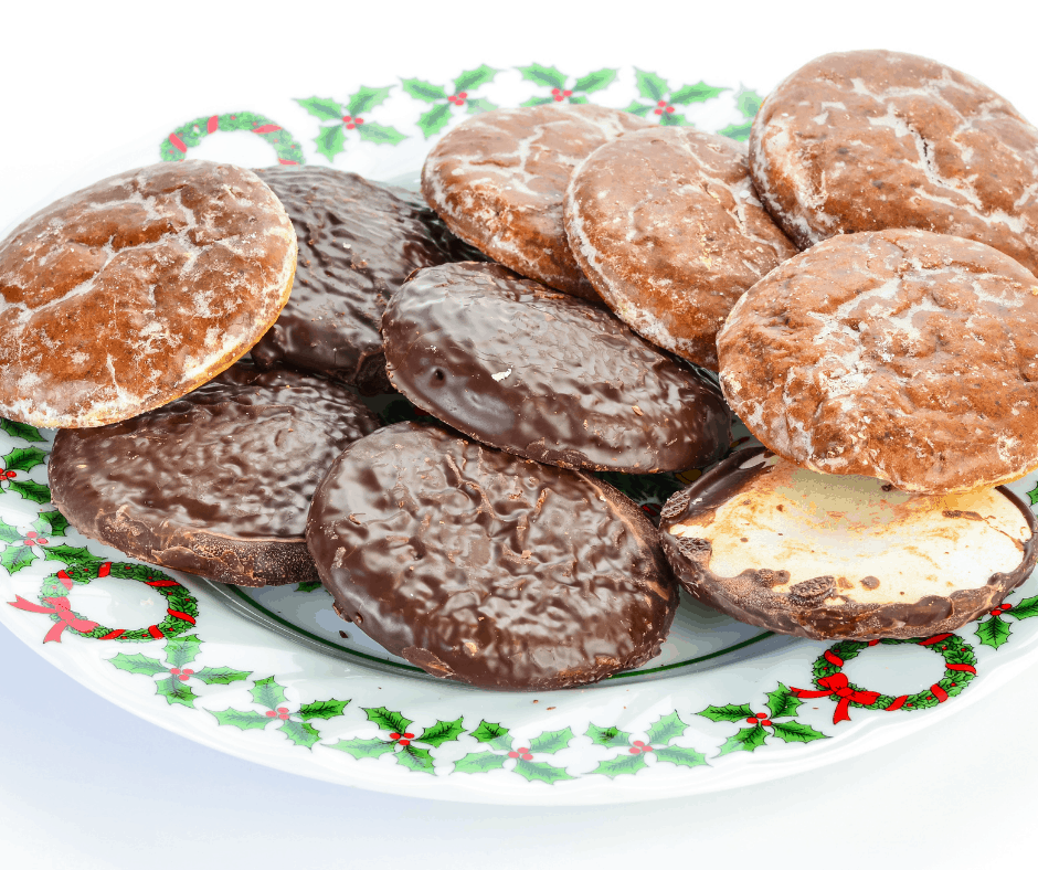 It’s just not Christmas in Germany without Lebkuchen! It’s everywhere (like in the Dominosteine above). Lebkuchen is like the gingerbread you find in the US but with a stronger and less sweet flavor. Lebkuchen is often covered in chocolate or topped with a sugary glaze. You’ll get the recipe in my How to Christmas Like a German activity book!