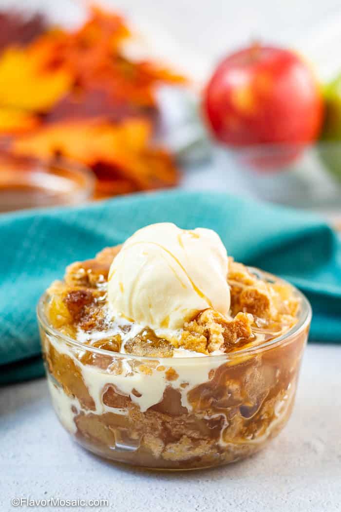 Apple Dump Cake with Caramel Sauce is the easiest and most delicious apple dessert or apple cobbler to make! It’s so easy even the kids can make it, and they’ll love it! This is an easy yet sweet and delicious Apple Cobbler that is drizzled with a warm, sweet caramel sauce and is made with cake mix and apple pie filling.