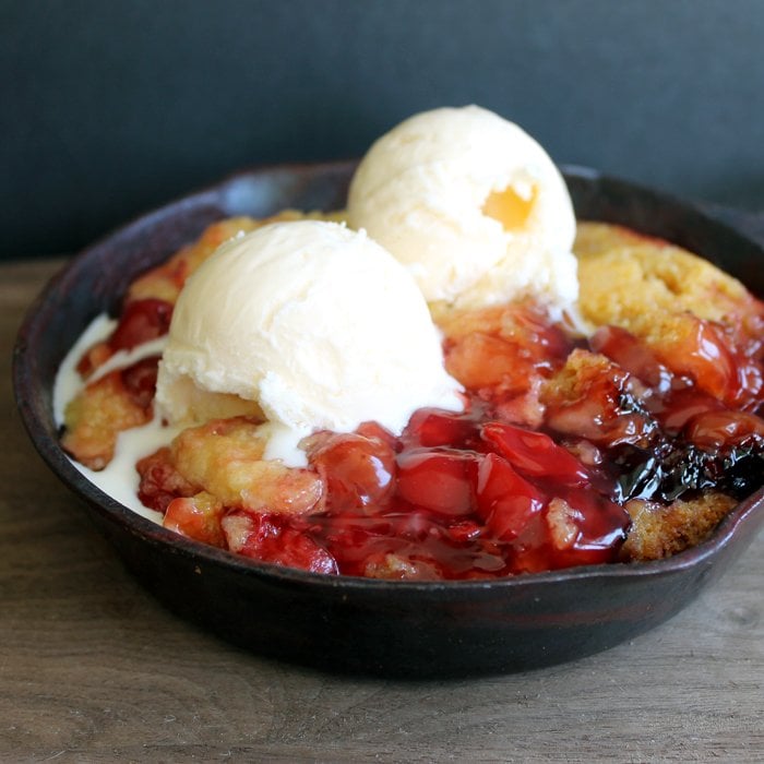 Sometimes, the best recipes are the ones you throw together using exactly what you already have in the pantry, kinda like this cast iron peach and blueberry cobbler.