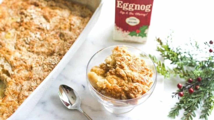 Eggnog Dump Cake is Christmas in a dish. Minimal ingredients and it's so easy to make!