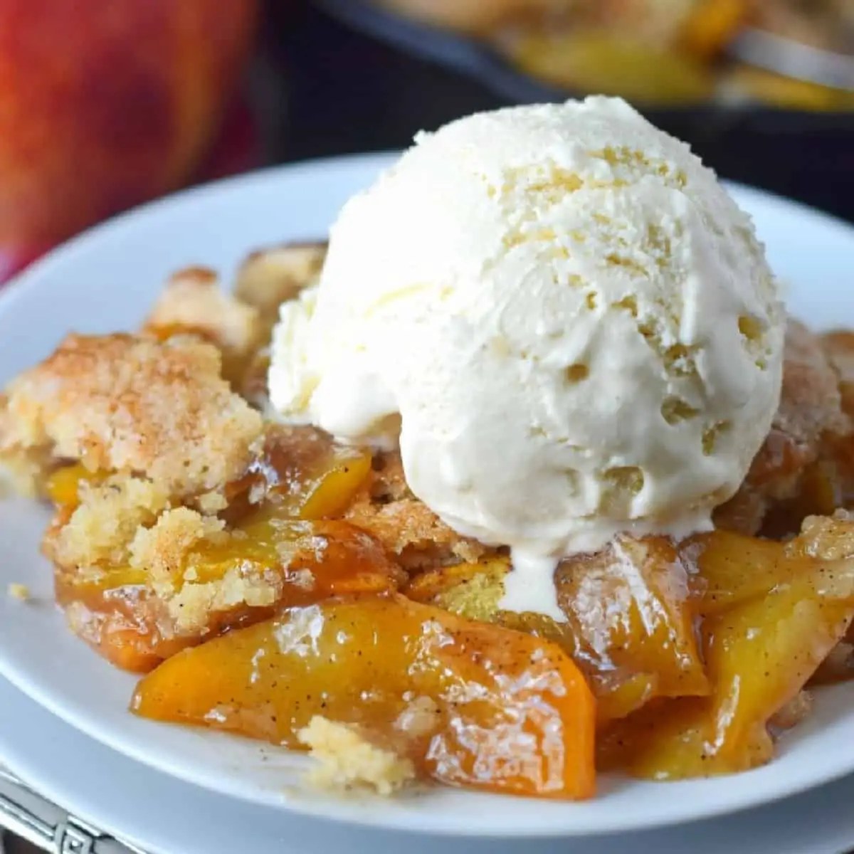 This easy Gluten-Free Peach Cobbler is vegan, allergy-free, made with sweet fresh peaches, and a buttery biscuit topping! A homemade old-fashioned Southern dessert recipe that's simple and quick, but out of this world delicious! Don't forget to top your "hot from the oven" serving with some dairy-free vanilla ice cream!