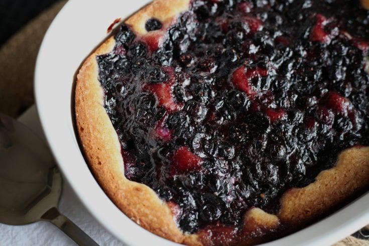 This old fashion cobbler recipe is a classic family favorite. Make it with any fruit you have available, here we used blueberries, and serve with whipped cream or ice cream.