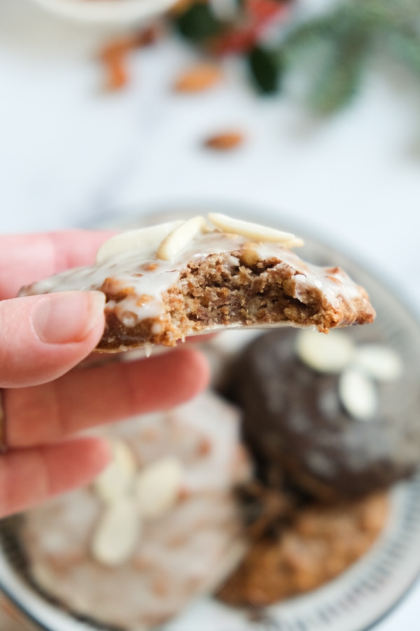 There are different kinds of Lebkuchen in Germany. One kind, for example, is Nürnberger Elisenlebkuchen — soft cookies dipped in sugar glaze or chocolate.