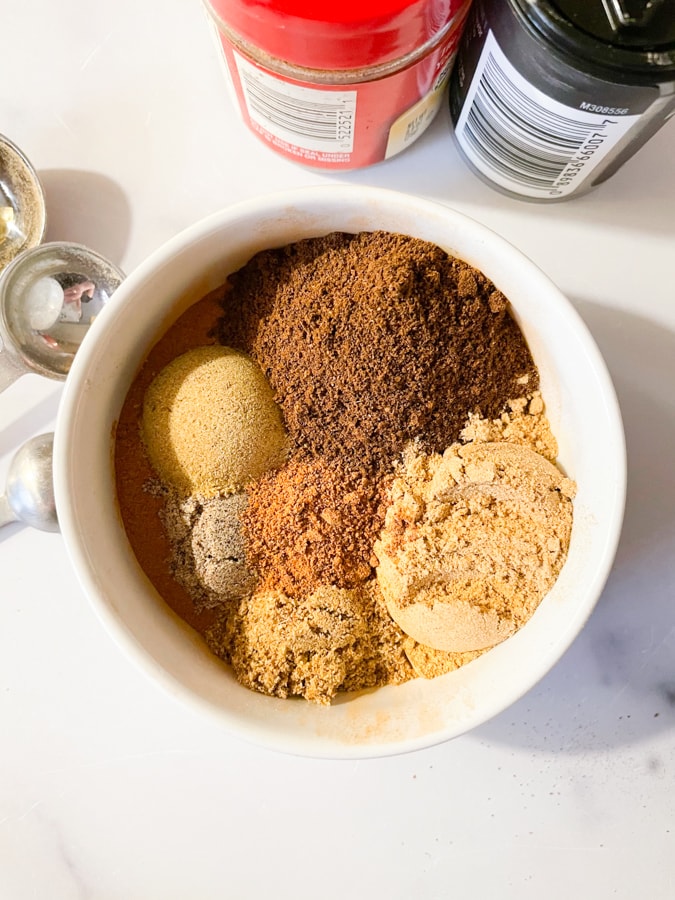 Add the following ground spices to a small jar or bowl (see recipe below for amounts):