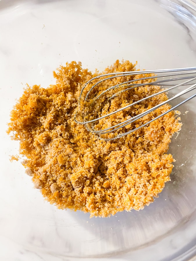 - Add the brown sugar, Lebkuchen Spice Mix, baking powder, and salt to a mixing bowl (or the food processor or the bowl of a stand mixer). Mix with a whisk or spoon until combined