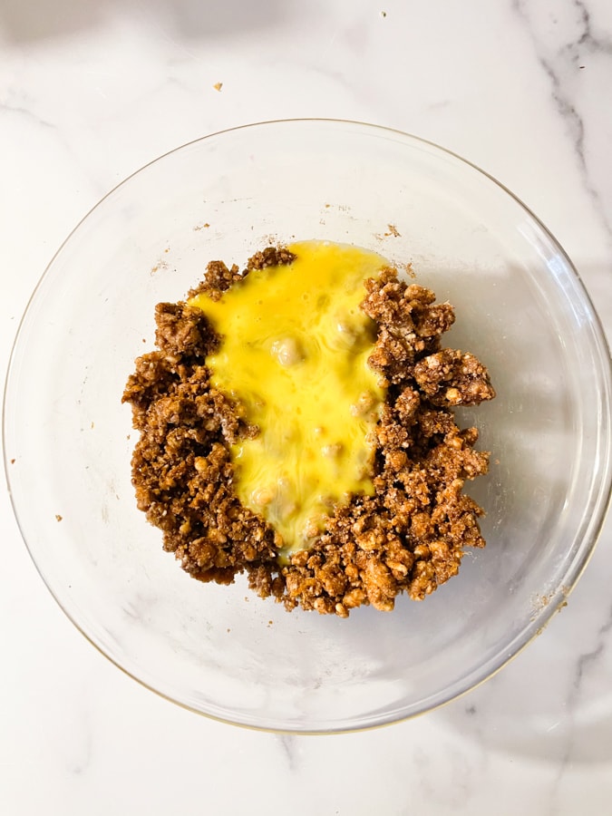 Whisk the eggs in a small bowl, then add the eggs to the dough and mix again.