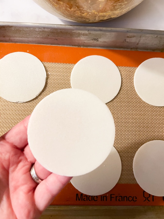 If you can’t order Oblaten or don’t want to (I don’t think they’re gluten-free, for example), you can draw circles on parchment and use that as a guide for your cookies, or simply drop the cookie dough on a Silpat mat or parchment paper and bake them. Don’t let not having Oblaten stand in your way of making these cookies!