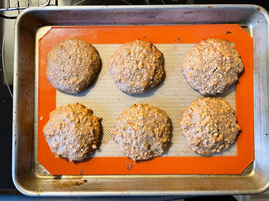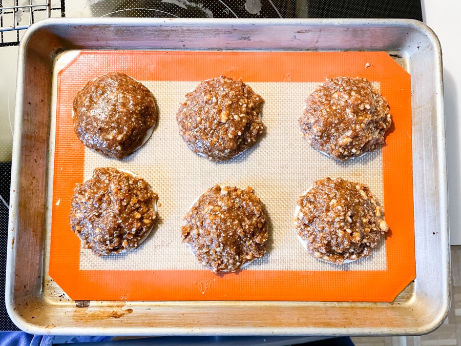 See the cookie in the upper left-hand corner in the photo below? I used damp fingers to spread out and shape the dough. You can see that the finished cookie is smoother than the others. If you’d like your cookies to be smoother, use that method.