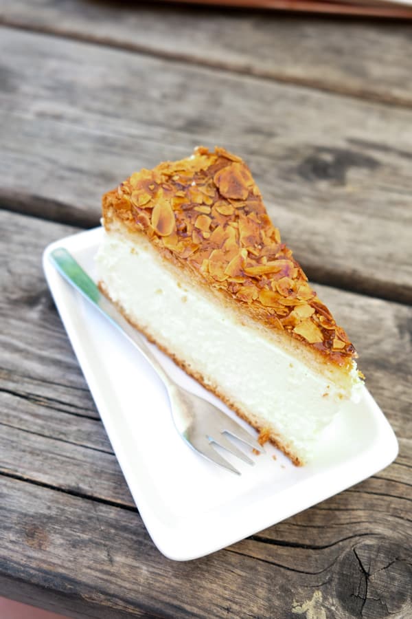 This traditional German treat has two layers of yeast cake, a vanilla cream filling, and a crunchy gooey honey almond topping.