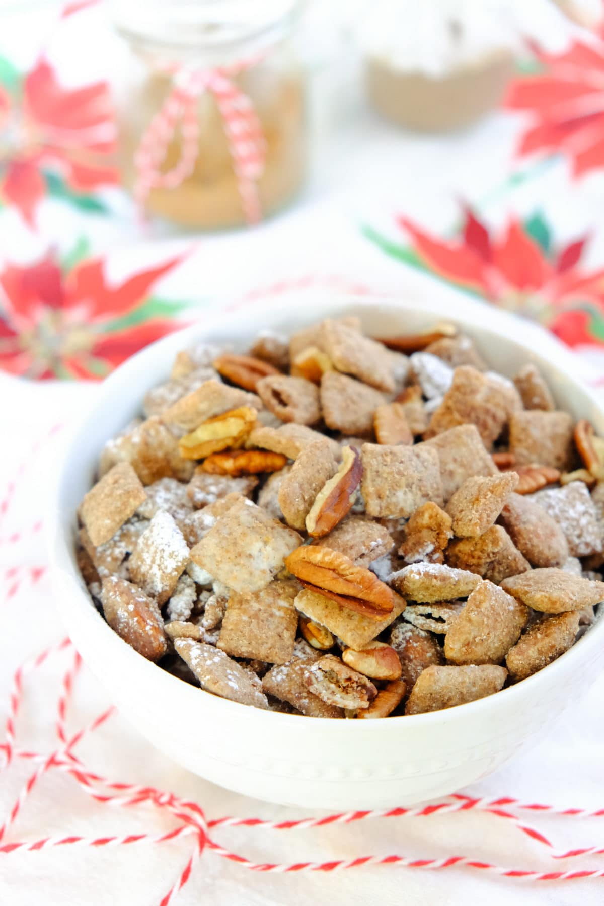 The spice mix really takes this Christmas muddy buddies recipe up a notch. It’s SO good and just tastes like Christmas. It’s become one of my favorite snacks to munch on during the holidays.