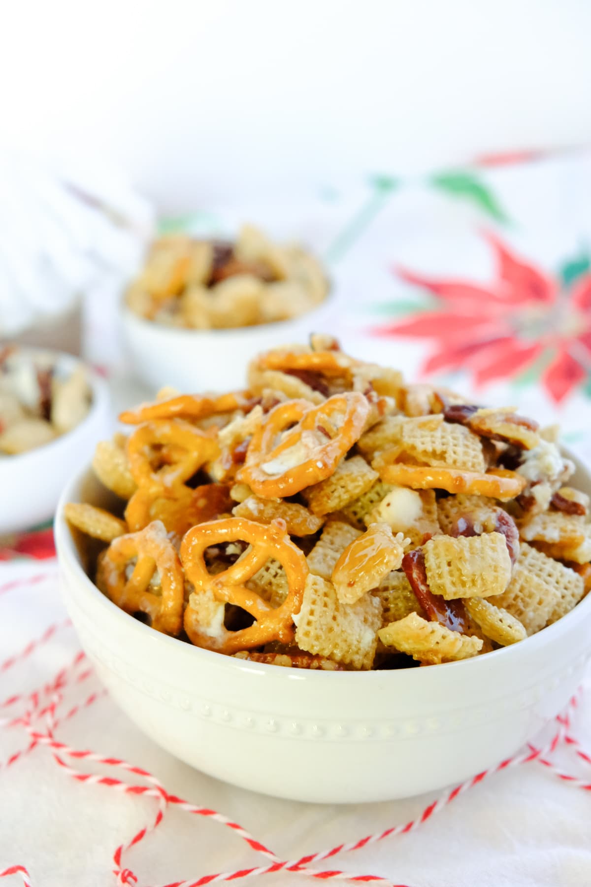 I call it a Christmas mix because I often make it during the holidays but it’s one of those tasty treats that’s delicious all year long! Perfect for snacking or a dessert treat.