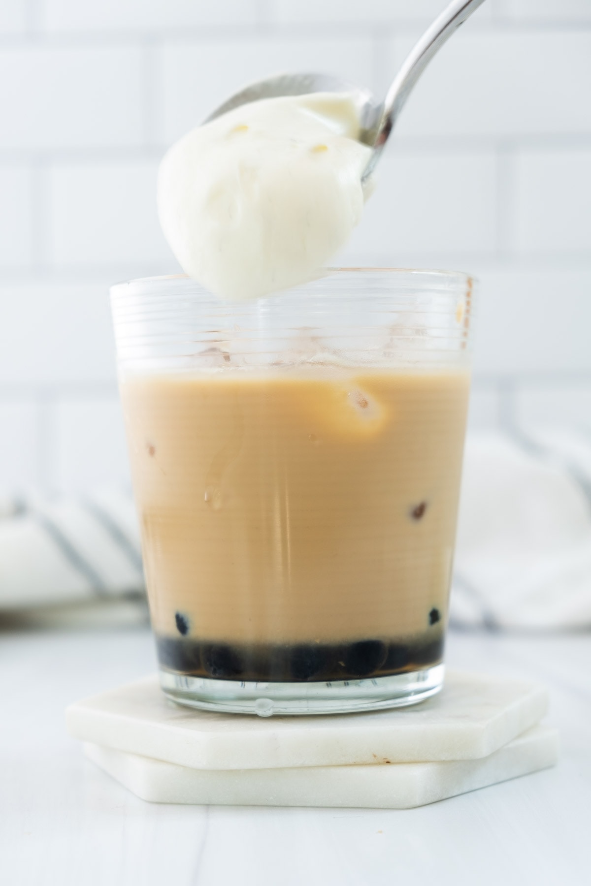 This fluffy, foamy cream cheese topping takes homemade milk tea (bubble tea) to a whole new level!