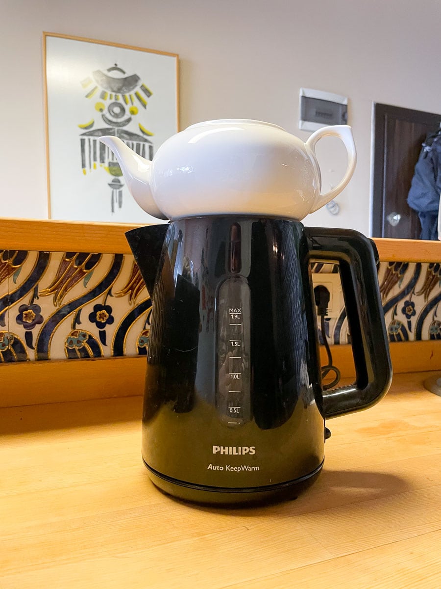 - If you prefer electric kettles, there are also electric Turkish dual teapots available in the market. This one is also made of stainless steel and has a huge capacity of 1L, perfect for serving large groups. The kettle I used in our apartment was electric. We used it every day to make various hot drinks.