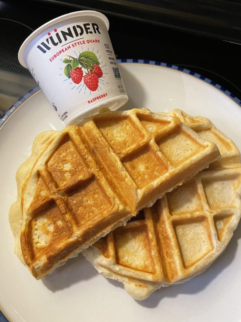 When I’m craving waffles I often make SkinnyTaste’s yogurt waffles. Now I make them with Quark!