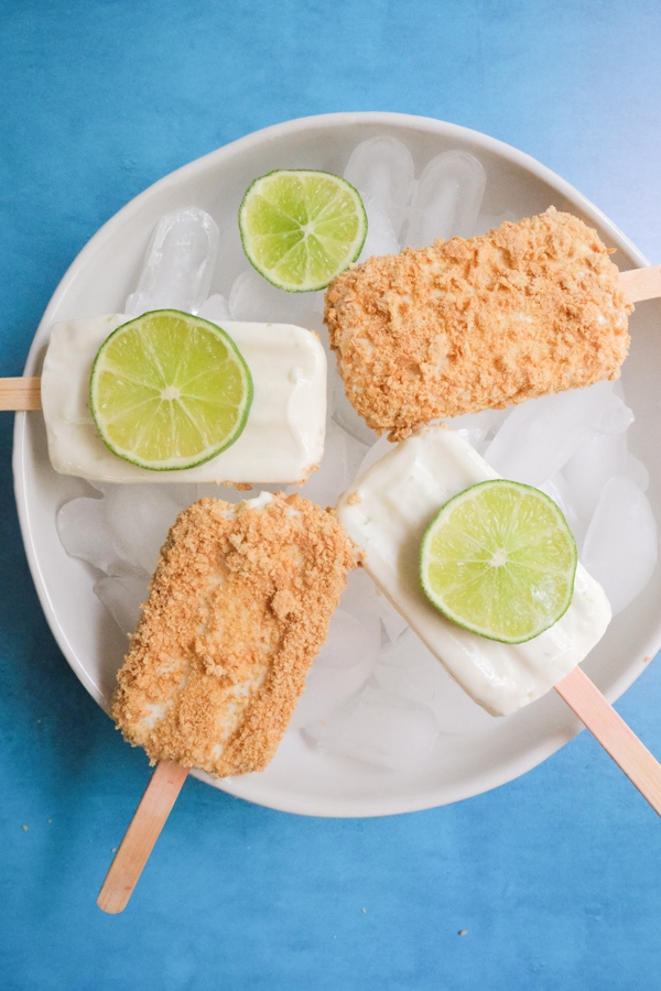 These super easy Mexican ice pops are creamy, crunchy, and full of lime flavor. Perfect for summer!