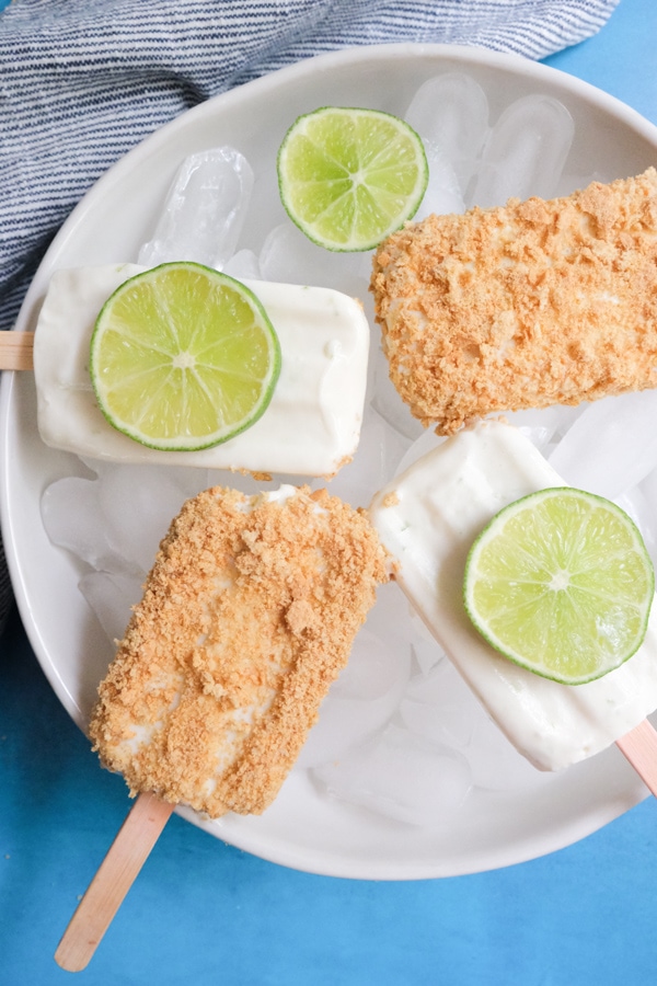 Or, if you prefer, you can leave the graham cracker crumbs off and simply enjoy creamy lime ice pops. They’re delicious either way.