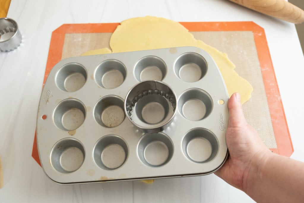 Use a cookie or biscuit cutter that’s larger than your mini muffin tin to cut out pastry rounds.