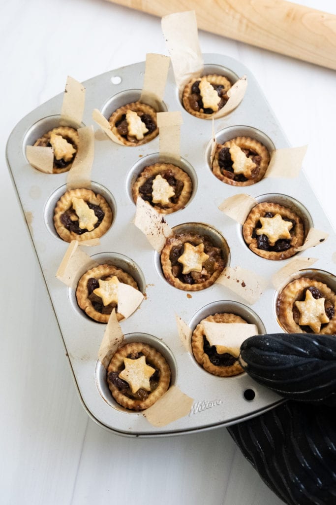 For the crust on the top of the pies, I tried different mini cookie cutters and liked the small stars and Christmas trees the best. I think stars are most traditional, but feel free to get creative.