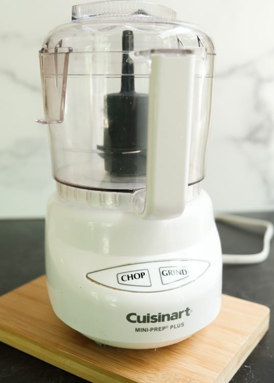 But then, a few years ago, I received this simple little Cuisinart Mini Prep Plus for Christmas…and now it’s now one of my most-used kitchen tools! It’s easy to pull out of the cupboard when I need it, it’s not deafeningly loud, it chops, grinds and blends well, and I can wash it quickly and easily.