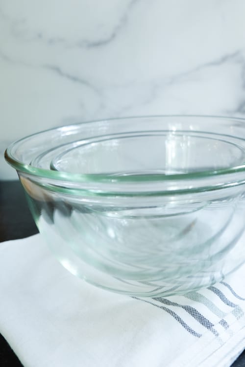 I bought a set of three simple glass mixing bowls after years of using a couple batter bowls for everything. I use these glass mixing bowls every single day for cooking and baking! I’ve thought about investing in a better set but I’ll probably stick with these for now because I like knowing that if I break one, they’re easy and inexpensive to replace!