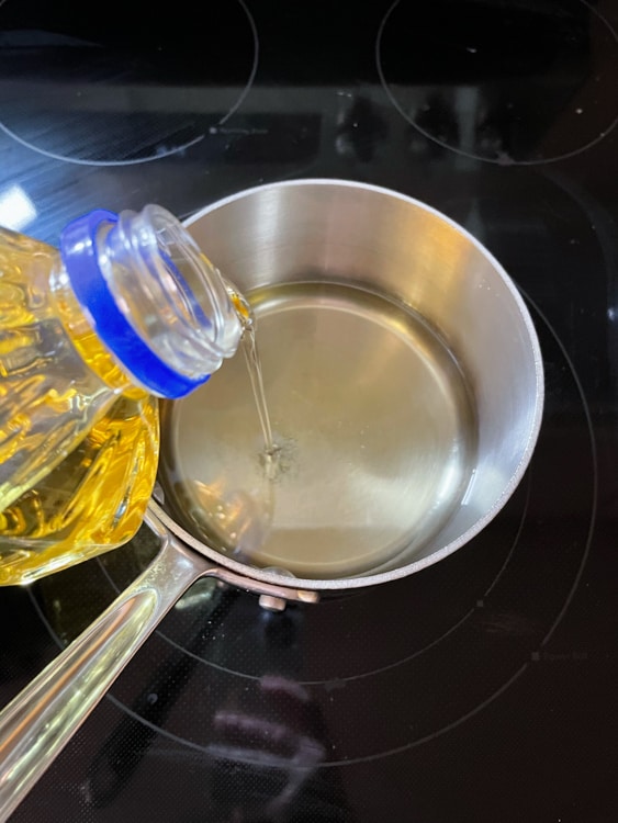 - Add oil to a saucepan and heat to 175C.