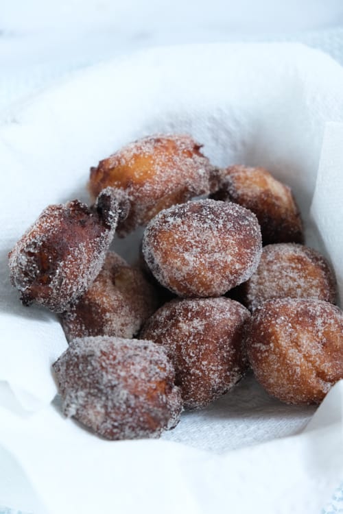 And they’re so easy to make. All you do is mix the ingredients together (it’s easiest in a stand mixer), let the dough rise, and then cook in oil until golden brown.